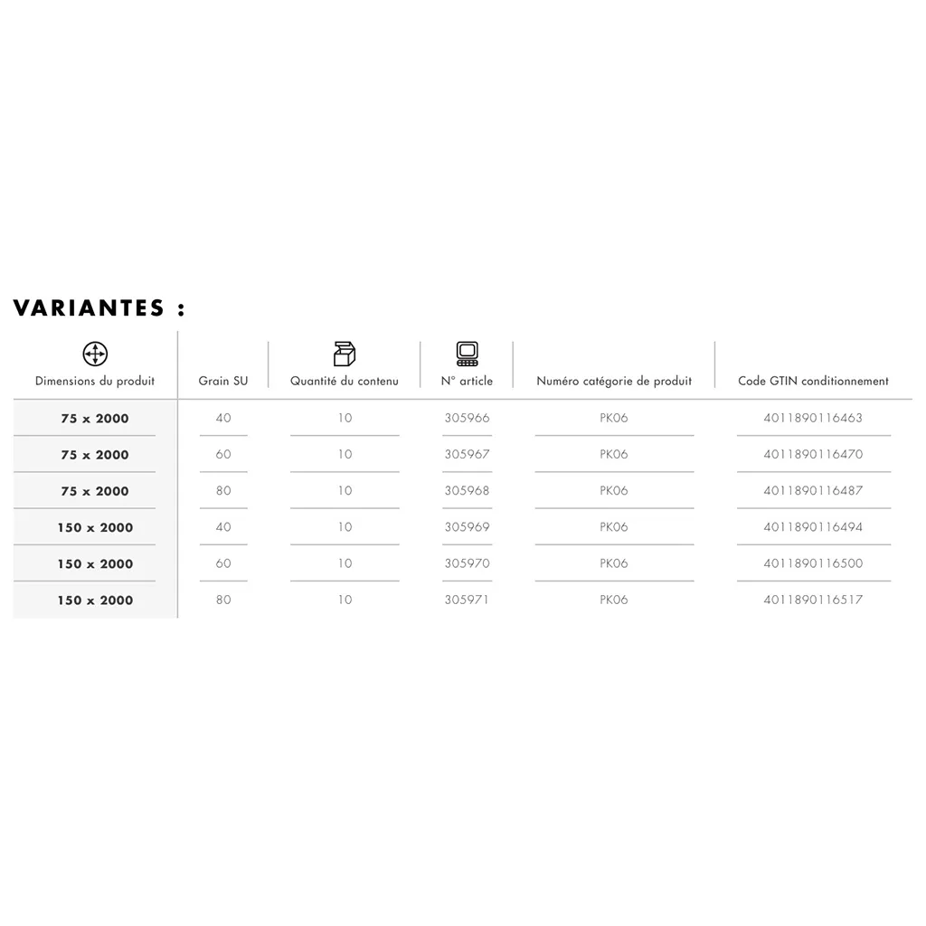 Un support X en polyester, lourd et étanche, est utilisé ici comme support. La bande est dotée d’un grain céramique auto-affûtant particulièrement agressif. Le grain est particulièrement dense. Le liant en résine artificielle enrichie d’additifs actifs (Top-size) est la garantie d’un meulage sans échauffement.
