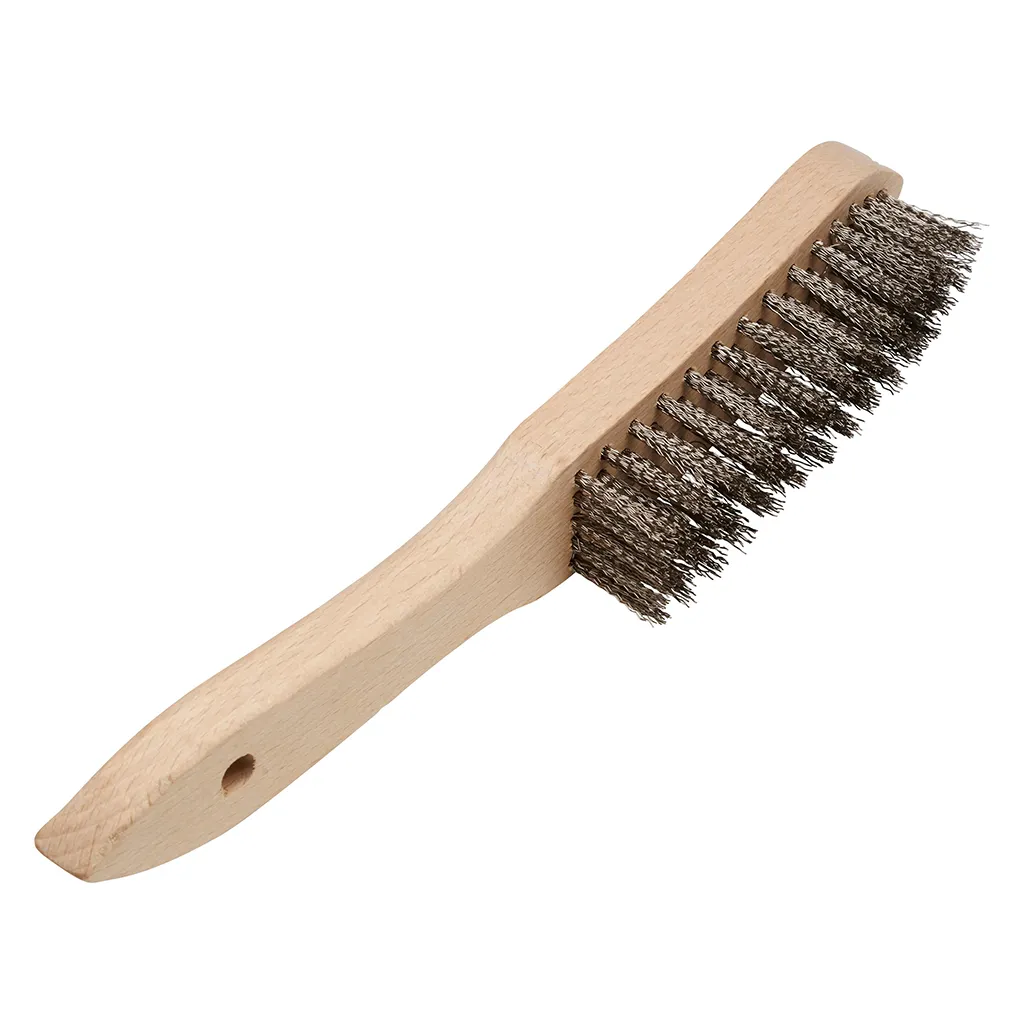 Brosse manuelle en acier inoxydable avec fil en acier inoxydable ondulé pour un nettoyage en douceur.