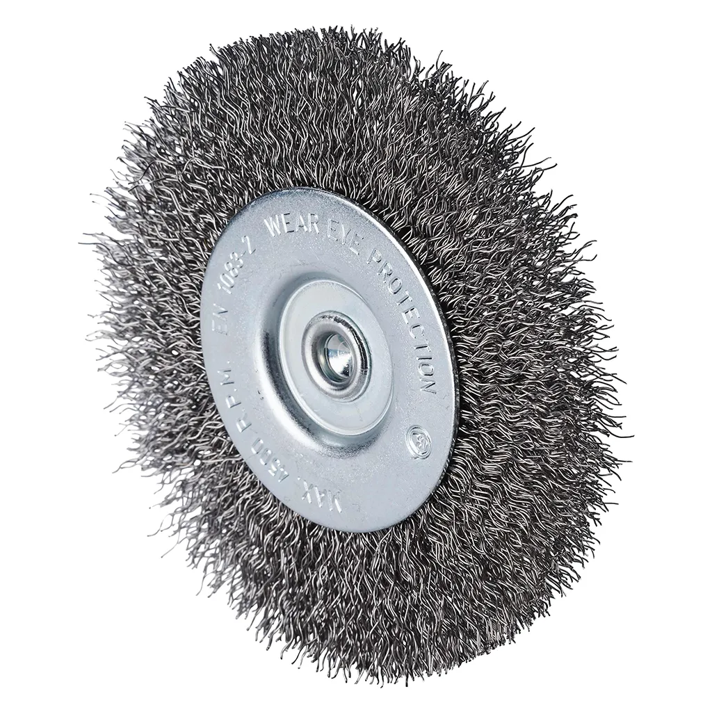 Brosse circulaire en acier inoxydable avec fil ondulé en acier inoxydable sur tige 6 mm.