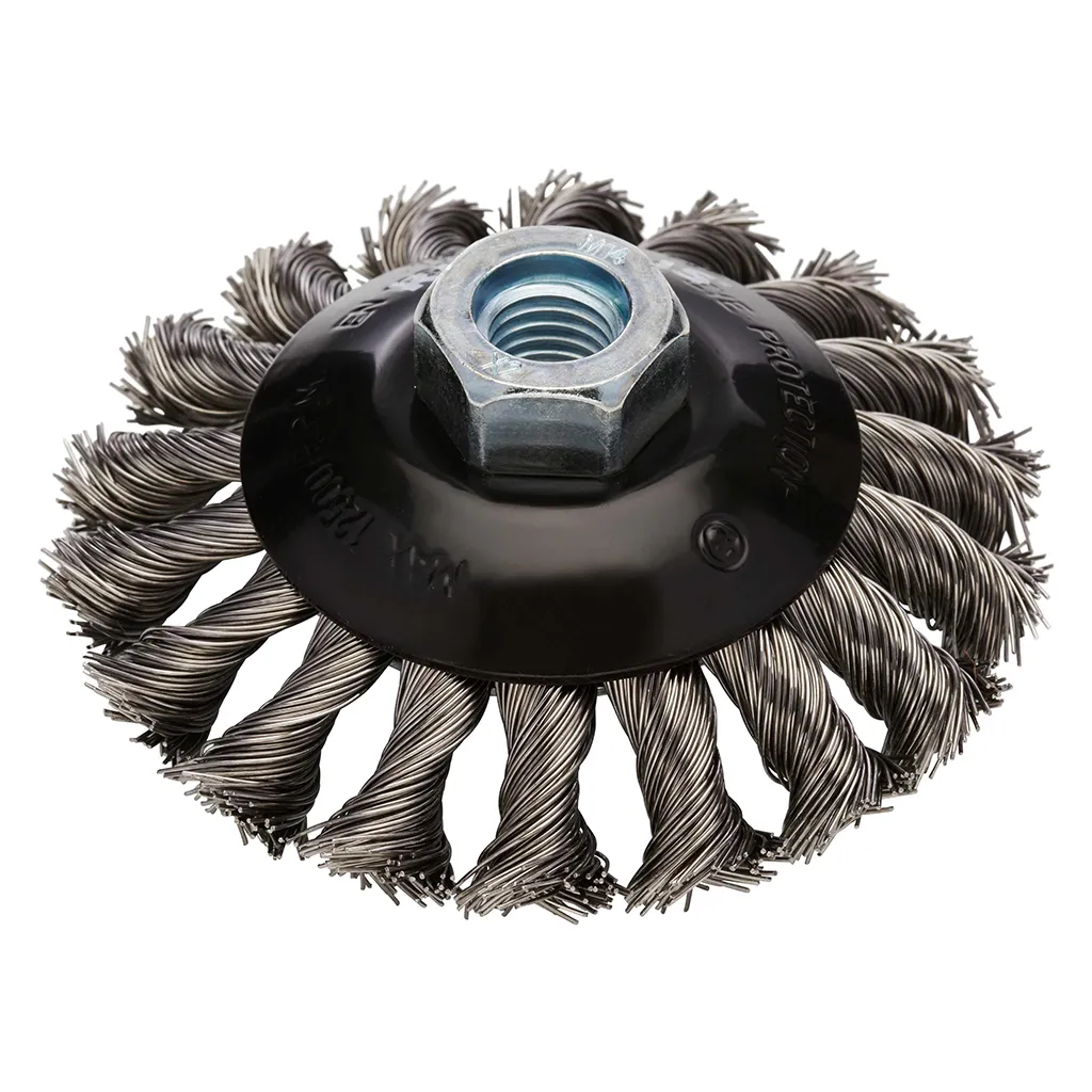 Brosse conique en acier avec fil torsadé en acier pour meuleuse d’angle.