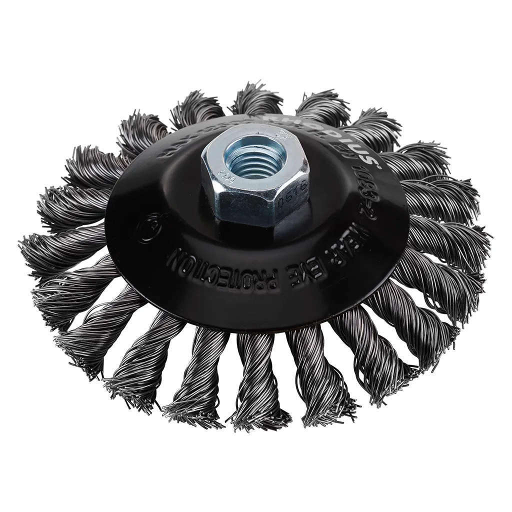 Brosse conique en acier avec fil torsadé en acier pour meuleuse d’angle.