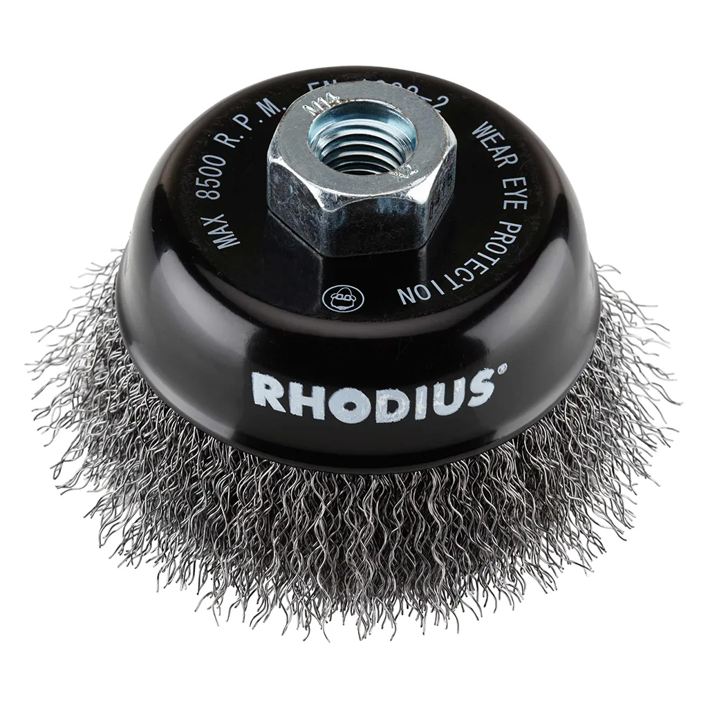 Les brosses coupes conviennent tout particulièrement pour le traitement efficace des grandes surfaces, des cordons de soudure et des plaques métalliques. Elles sont ici tout particulièrement utilisées pour nettoyer, ébavurer, dépurer et dérouiller. Cette brosse coupe RHODIUS pour l’acier convient parfaitement pour le traitement de l’acier à haute rigidité ou fortement allié, de l’acier de construction, de l’acier à outils, de l’acier trempé et des tôles à haute rigidité.