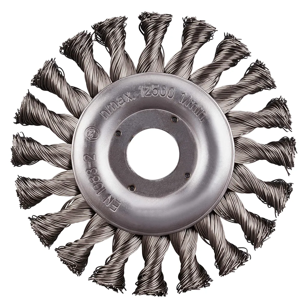 Brosse circulaire en acier inoxydable avec fil torsadé en acier inoxydable pour meuleuse d’angle.