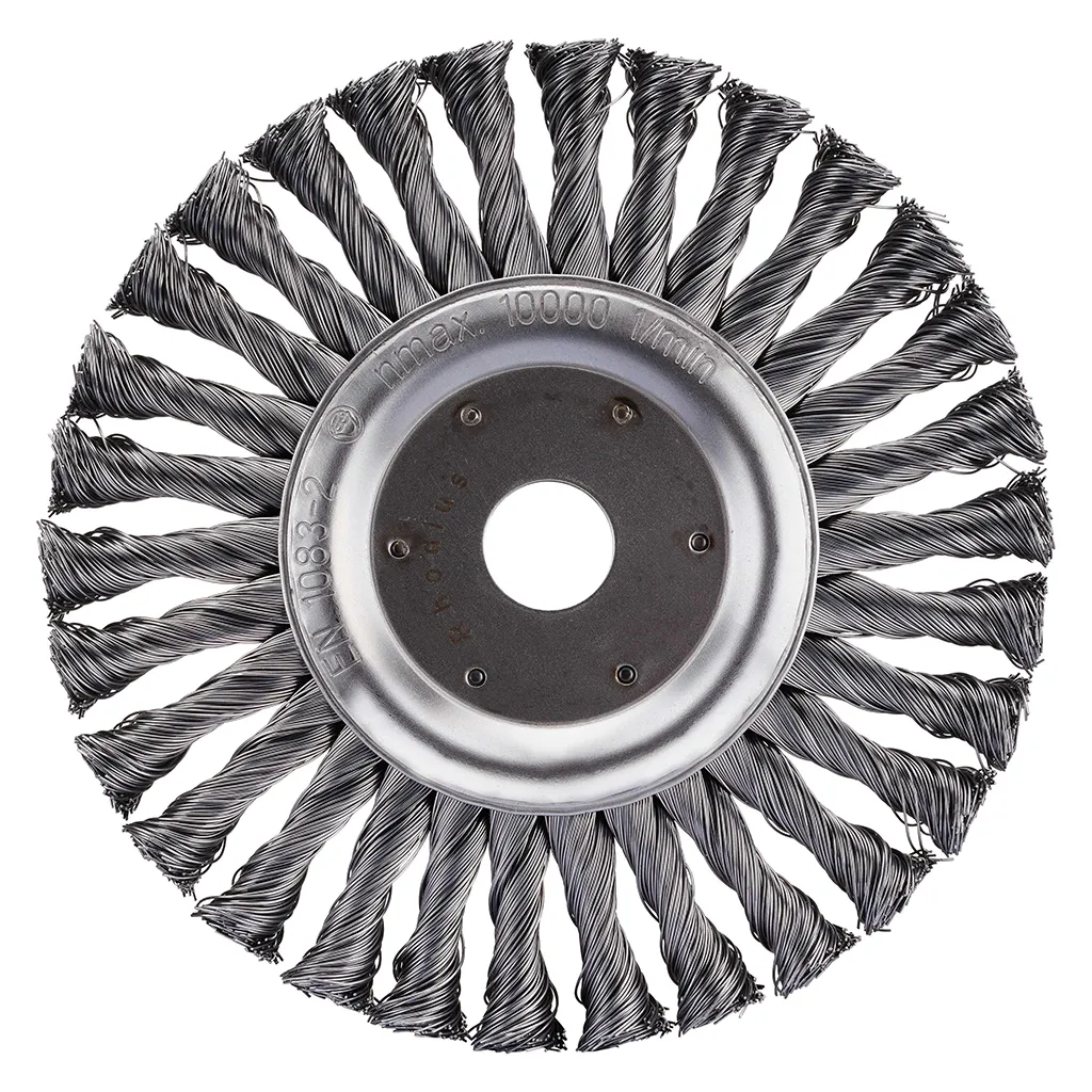 Brosse circulaire en acier avec fil torsadé en acier pour meuleuse d’angle.
