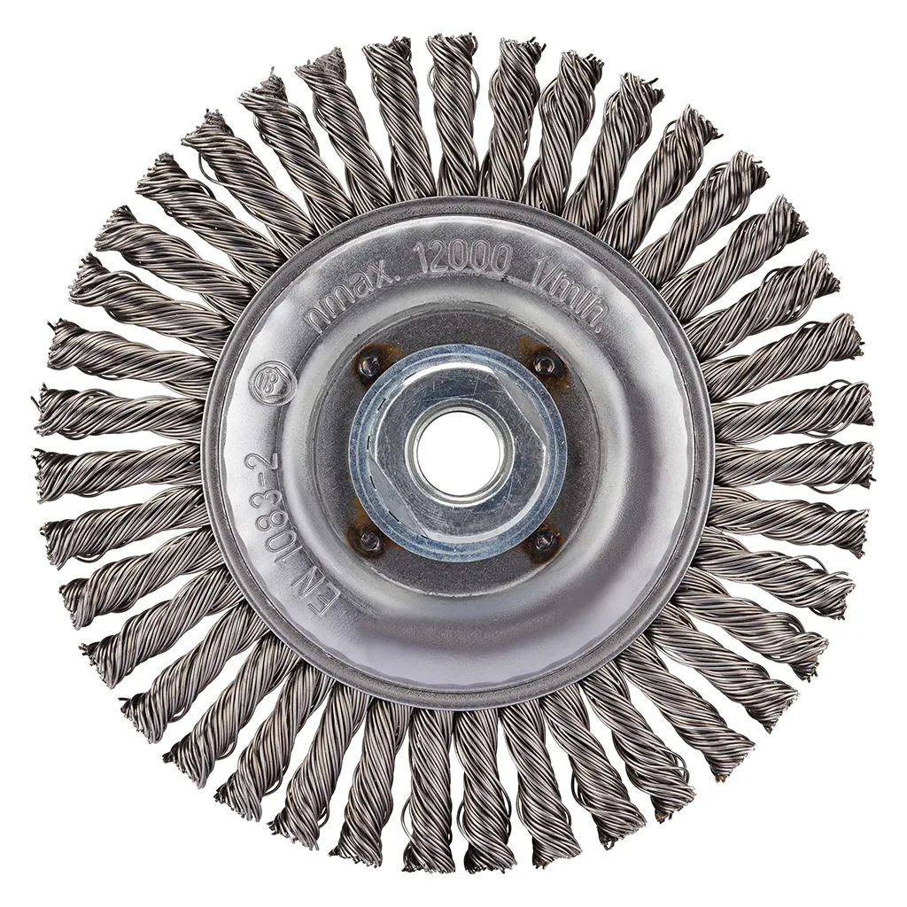 Brosse circulaire en acier avec fil torsadé en acier pour meuleuse d’angle.