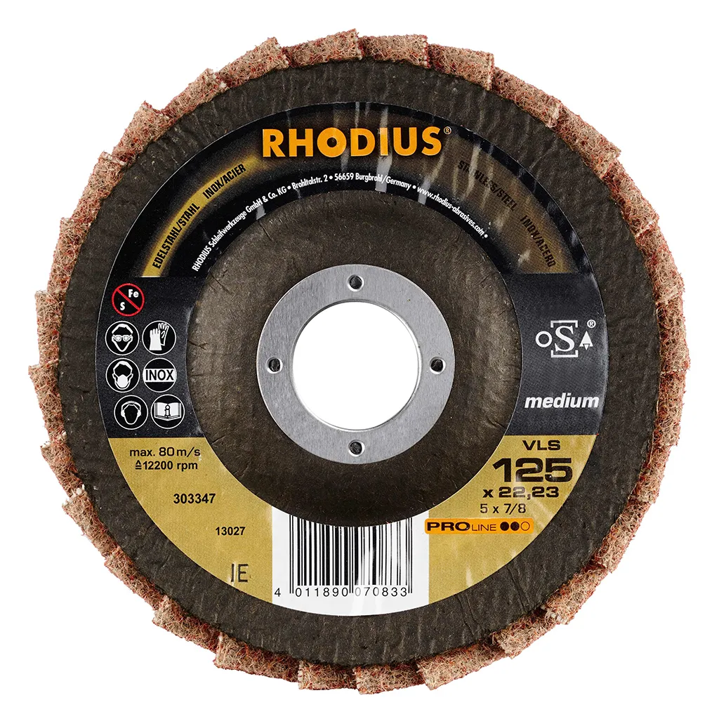 Avec la roue à lamelles en non-tissé RHODIUS VLS, l’utilisateur est assuré d’acquérir un outil satisfaisant aux exigences de qualité élevées de l’industrie et l’artisanat. Pour un travail encore plus rentable, nous recommandons l’utilisation d’un outil RHODIUS de la gamme de qualité TOP.