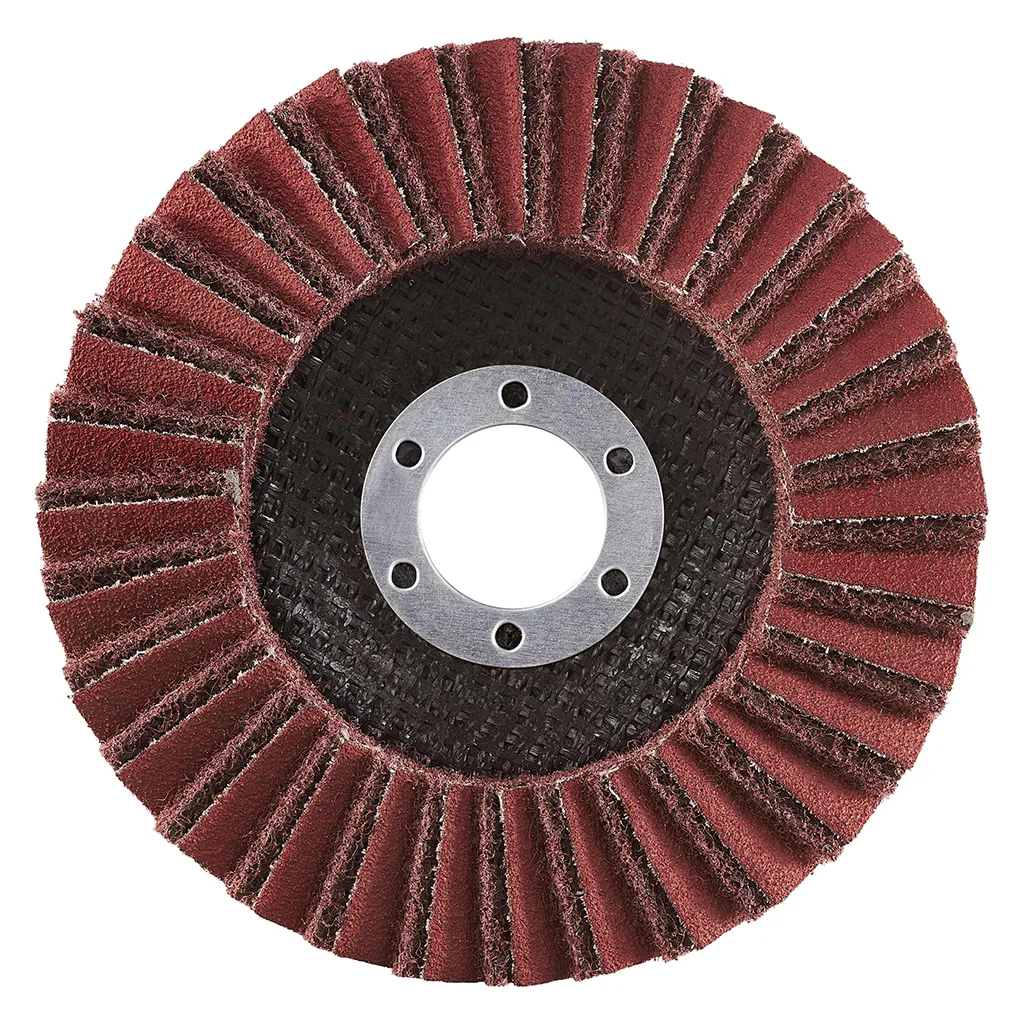 Le disque à lamelles combiné (abrasifs appliqués et non-tissé) avec des encoches convient pour être utilisés sur les meuleuses d’angle de toutes les catégories de puissance. Un réduction du régime à n = 3-4000 tr/min. est recommandée dans la pratique de manière à garantir une durée de vie optimale.