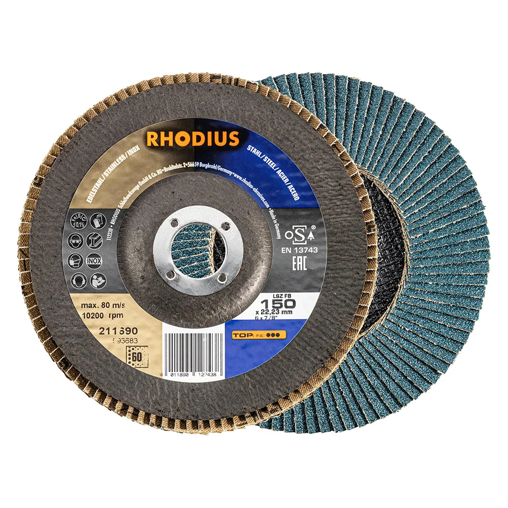 Disque à lamelles à base de zirconium avec une capacité d’enlèvement extrêmement élevée sur l’acier et des résultats optimaux sur l’acier inoxydable avec une durée de vie relativement élevée.