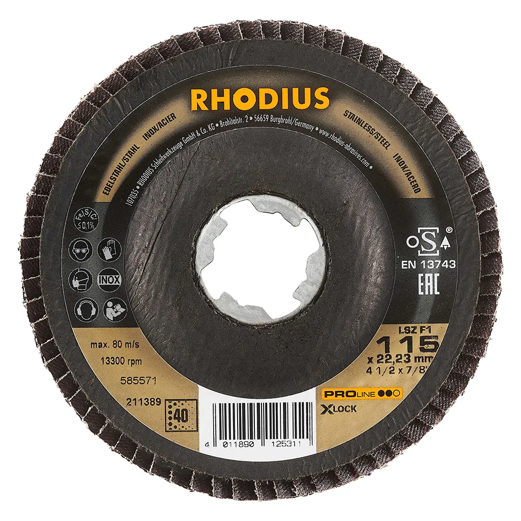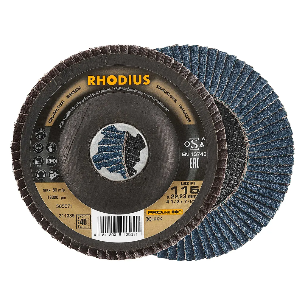 Avec le LSZ F1 X-LOCK, l’utilisateur est assuré d’acquérir un outil satisfaisant aux exigences de qualité élevées de l’industrie et l’artisanat. Pour un travail encore plus rentable, nous recommandons l’utilisation de disques à lamelles RHODIUS de la gamme de qualité TOP.