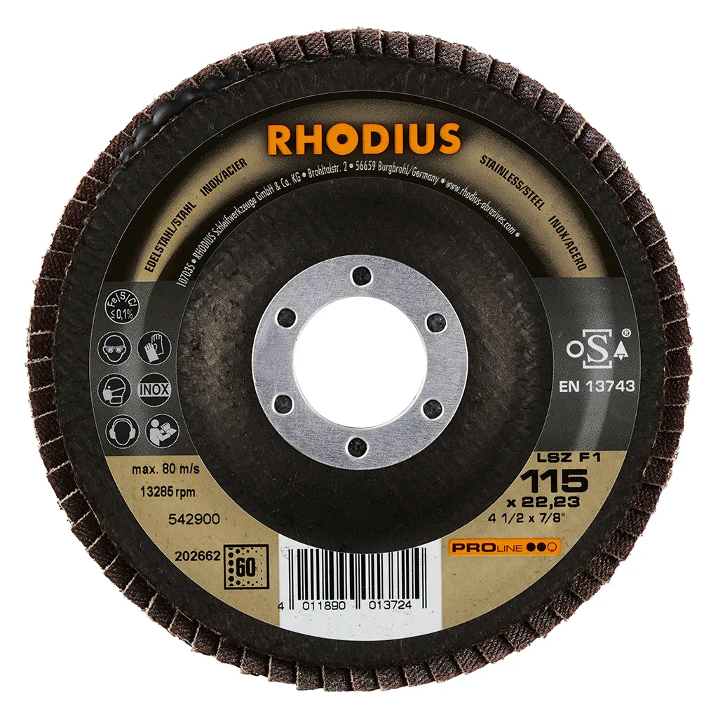 Avec le LSZ F1, l’utilisateur est assuré d’acquérir un outil satisfaisant aux exigences de qualité élevées de l’industrie et l’artisanat. Pour un travail encore plus rentable, nous recommandons l’utilisation de disques à lamelles RHODIUS de la gamme de qualité TOP.