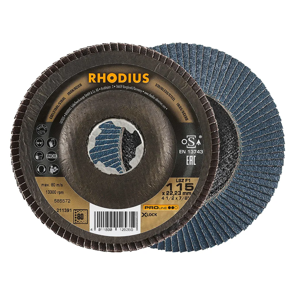 Avec le LSZ F1 X-LOCK, l’utilisateur est assuré d’acquérir un outil satisfaisant aux exigences de qualité élevées de l’industrie et l’artisanat. Pour un travail encore plus rentable, nous recommandons l’utilisation de disques à lamelles RHODIUS de la gamme de qualité TOP.