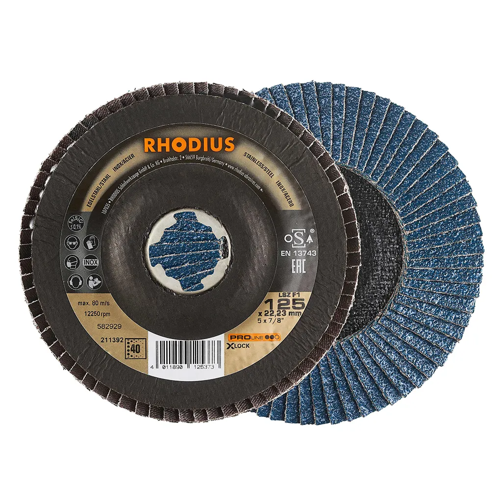 Avec le LSZ F1 X-LOCK, l’utilisateur est assuré d’acquérir un outil satisfaisant aux exigences de qualité élevées de l’industrie et l’artisanat. Pour un travail encore plus rentable, nous recommandons l’utilisation de disques à lamelles RHODIUS de la gamme de qualité TOP.