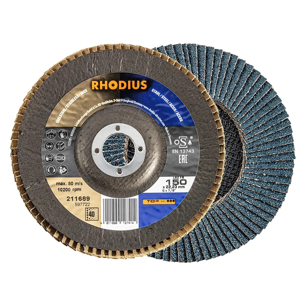 Disque à lamelles à base de zirconium avec une capacité d’enlèvement extrêmement élevée sur l’acier et des résultats optimaux sur l’acier inoxydable avec une durée de vie relativement élevée.