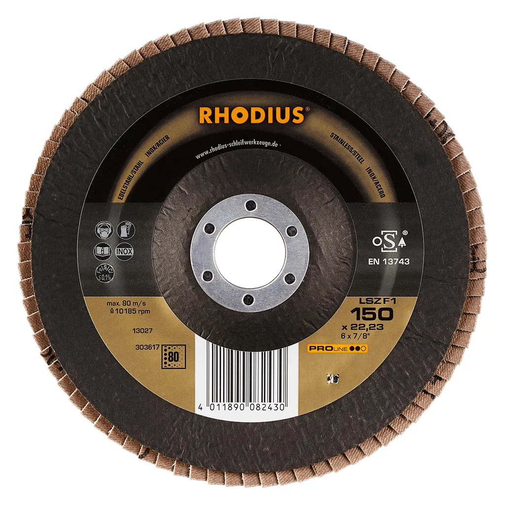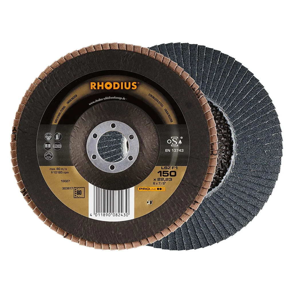 Ce disque a été conçu conformément à la norme EN 13743, satisfait aux exigences de sécurité et est homologué par l’oSA. Il est doté d’un plateau support en fibres de verre. Son utilisateur peut travailler en exerçant de fortes pressions sur sa machine. Le LSZ F1 utilise du zirconium de qualité comme grain abrasif. Tous les disques à lamelles RHODIUS ne contiennent en outre ni fer, ni soufre. Les lamelles sont placées de manière conique sur ce disque. Le positionnement conique des lamelles à 10° améliore l’ergonomie pendant le meulage et facilite ainsi la manipulation.