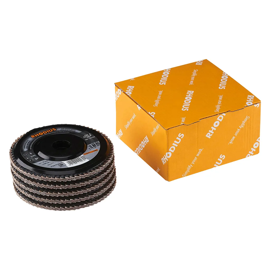 Ce disque a été conçu conformément à la norme EN 13743, satisfait aux exigences de sécurité et est homologué par l’oSA. Le plateau support spécial est fabriqué en ABS. Ce disque peut sans aucun problème être ajusté. En d’autres termes, les lamelles à débord s’usant au fil du temps peuvent être meulées, permettant de continuer à utiliser pleinement la surface de meulage encore intacte. Le LGA ALU utilise de l’oxyde d’aluminium (corindon) de qualité comme grain abrasif. Celui-ci est auto-affûtant. Tous les disques à lamelles RHODIUS ne contiennent en outre ni fer, ni soufre. Les lamelles de ce disque sont plates. Lorsqu’un meulage plan est requis, cet agencement plat des lamelles facilite tout particulièrement le travail.