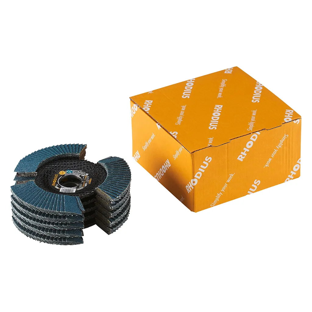 Ce disque a été conçu conformément à la norme EN 13743, satisfait aux exigences de sécurité et est homologué par l’oSA. Il est doté d’un plateau support en fibres de verre. Son utilisateur peut travailler en exerçant de fortes pressions sur sa machine. Le VISION PRO utilise du zirconium de qualité comme grain abrasif. Tous les disques à lamelles RHODIUS ne contiennent en outre ni fer, ni soufre. Les lamelles sont placées de manière conique sur ce disque. Le positionnement conique des lamelles à 10° améliore l’ergonomie pendant le meulage et facilite ainsi la manipulation.