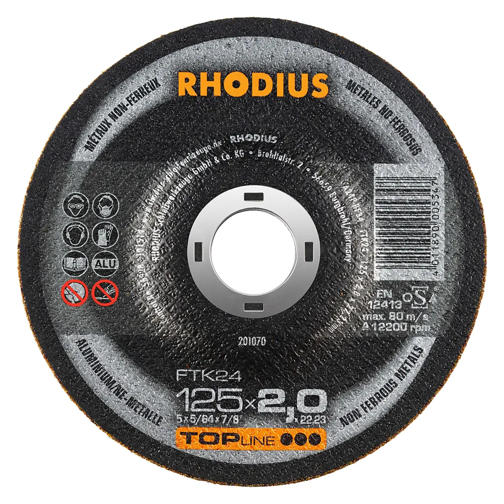Le disque de tronçonnage FTK24 convient pour les utilisations manuelles sur les meuleuses d’angle et machines à haute fréquence (HF) et à air comprimé.