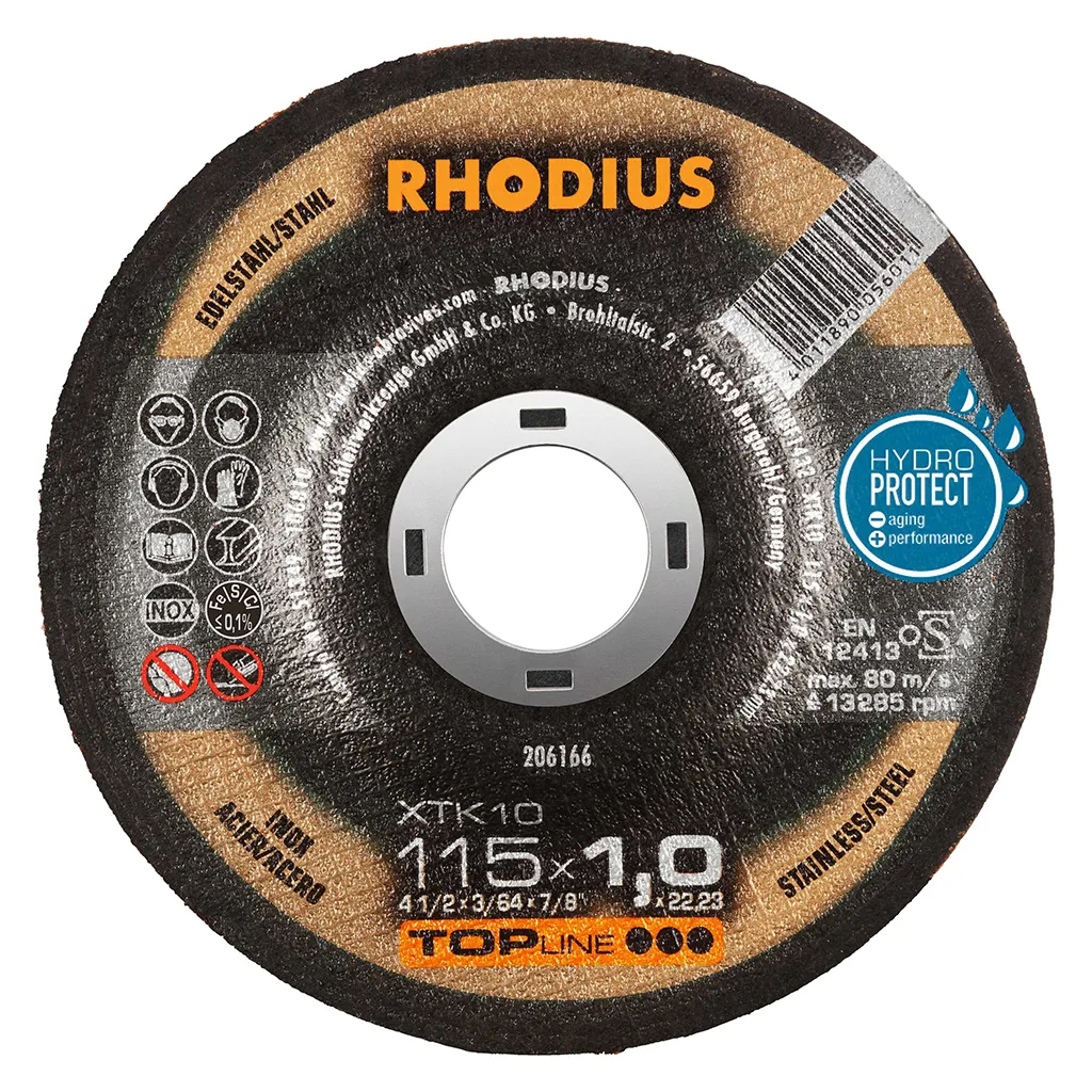 Les disques de tronçonnage RHODIUS pour l’acier inoxydable ne contiennent ni fer, ni soufre. Afin d’éviter la rouille, nous conseillons de ne jamais passer de l’acier normal à l’acier inoxydable avec le même disque.