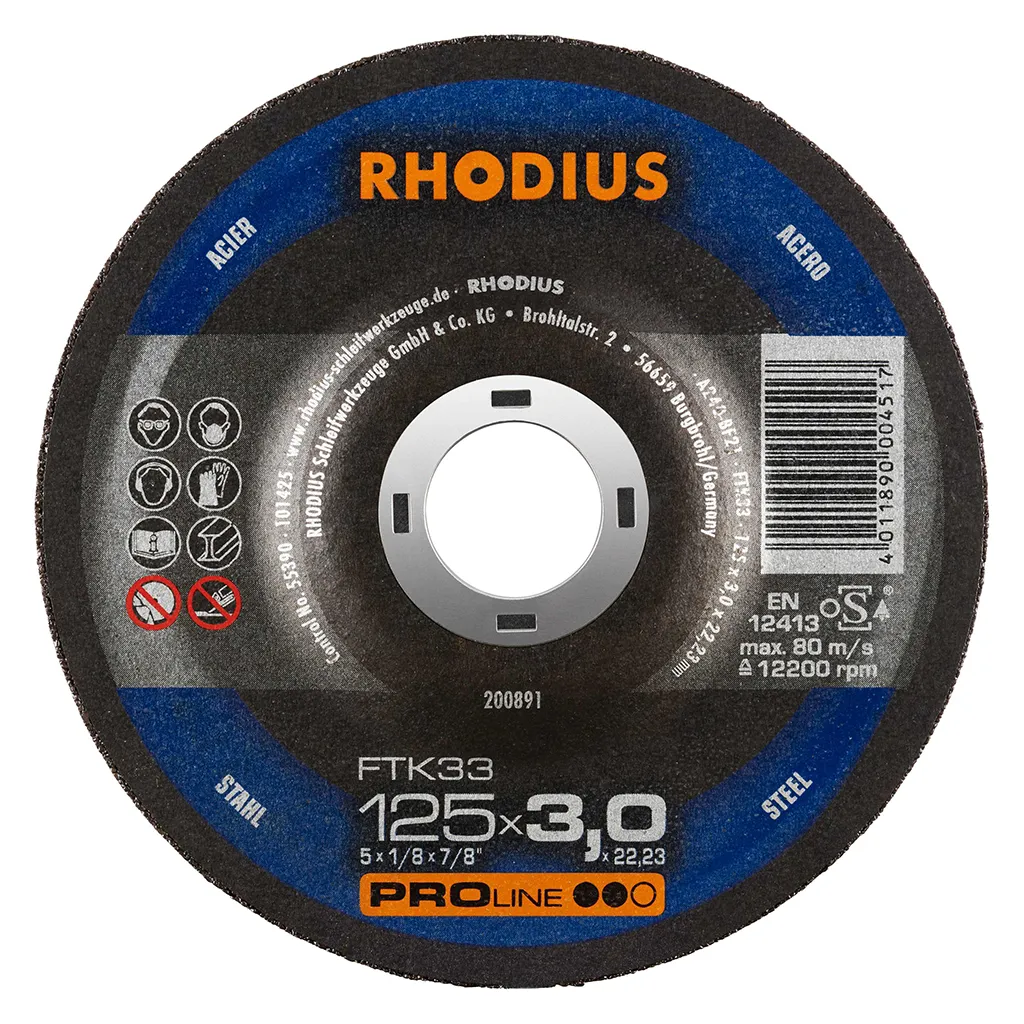 Dans la pratique, le FTK33 convainc par ses coupes agressives et son fonctionnement exceptionnellement silencieux. Un travail précis dans les matériaux à paroi mince ne pose plus aucun problème. Ce disque de tronçonnage permet un travail particulièrement rentable. Cet outil de qualité RHODIUS convient tout particulièrement pour le tronçonnage de l’acier de construction, de l’acier à outils et de l’acier fortement allié, mais aussi des supports, profilés, plaques et traverses.
