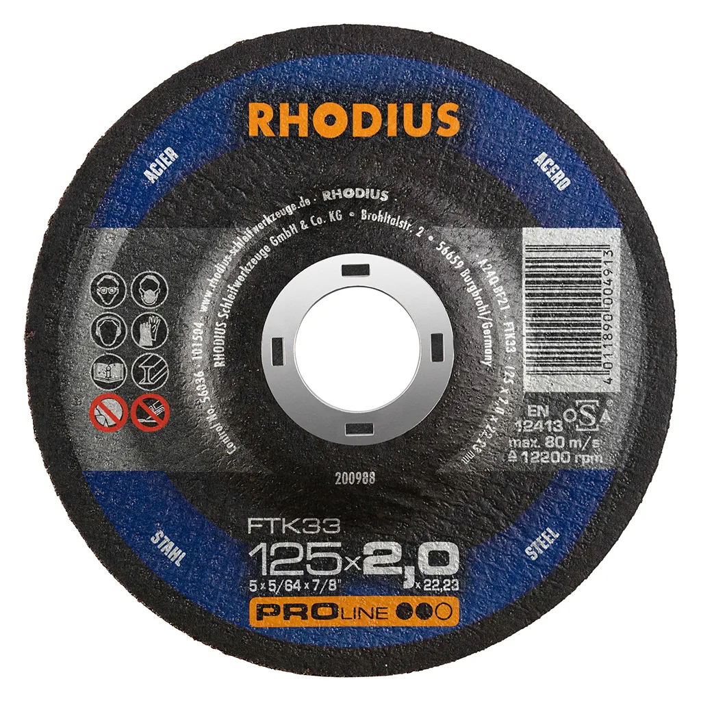Dans la pratique, le FTK33 convainc par ses coupes agressives et son fonctionnement exceptionnellement silencieux. Un travail précis dans les matériaux à paroi mince ne pose plus aucun problème. Ce disque de tronçonnage permet un travail particulièrement rentable. Cet outil de qualité RHODIUS convient tout particulièrement pour le tronçonnage de l’acier de construction, de l’acier à outils et de l’acier fortement allié, mais aussi des supports, profilés, plaques et traverses.
