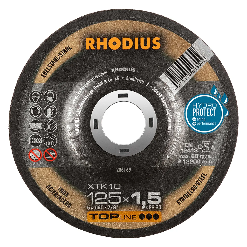 Les disques de tronçonnage RHODIUS pour l’acier inoxydable ne contiennent ni fer, ni soufre. Afin d’éviter la rouille, nous conseillons de ne jamais passer de l’acier normal à l’acier inoxydable avec le même disque.