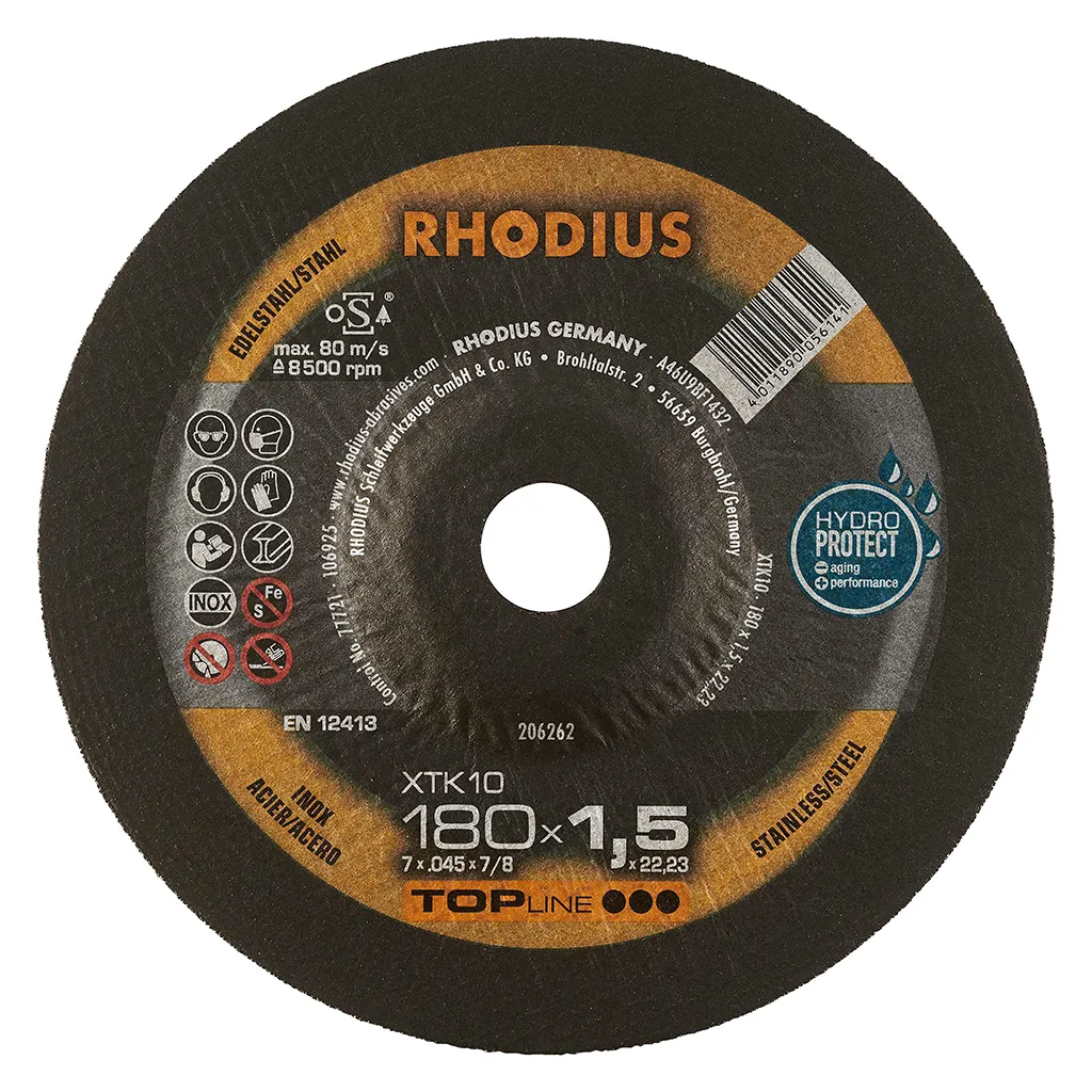 Les disques de tronçonnage RHODIUS pour l’acier inoxydable ne contiennent ni fer, ni soufre. Afin d’éviter la rouille, nous conseillons de ne jamais passer de l’acier normal à l’acier inoxydable avec le même disque.