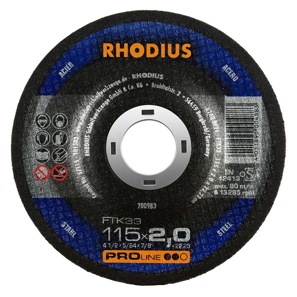 Dans la pratique, le FTK33 convainc par ses coupes agressives et son fonctionnement exceptionnellement silencieux. Un travail précis dans les matériaux à paroi mince ne pose plus aucun problème. Ce disque de tronçonnage permet un travail particulièrement rentable. Cet outil de qualité RHODIUS convient tout particulièrement pour le tronçonnage de l’acier de construction, de l’acier à outils et de l’acier fortement allié, mais aussi des supports, profilés, plaques et traverses.