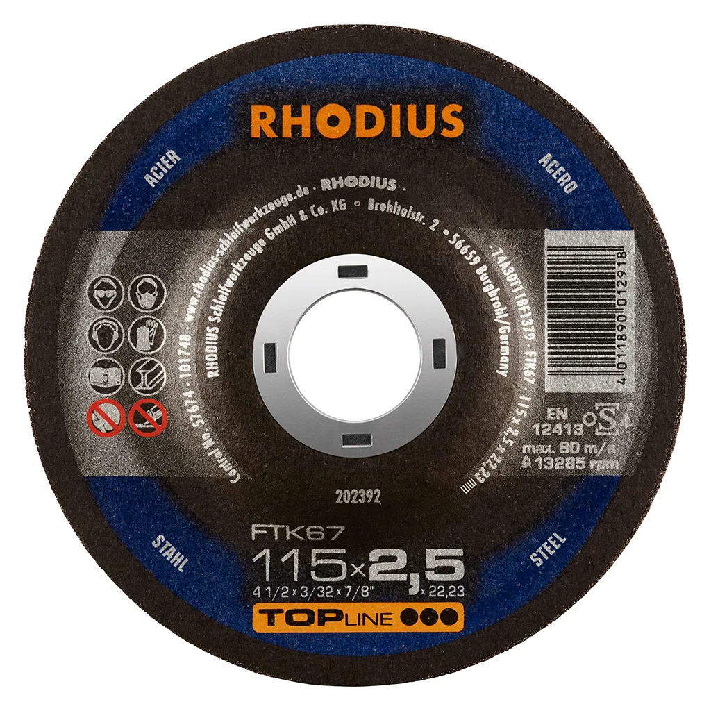 Dans la pratique, le FTK67 convainc par une durée de vie très élevée, ainsi que des coupes agressives. Un travail précis dans les matériaux à paroi mince ne pose plus aucun problème. Ce disque se caractérise par une formation de poussière réduite et un fonctionnement exceptionnellement silencieux. Ce disque de tronçonnage permet un travail particulièrement rentable. Cet outil de qualité RHODIUS convient tout particulièrement pour le tronçonnage de l’acier de construction, de l’acier à outils et de l’acier fortement allié, mais aussi des supports, profilés, plaques et traverses.