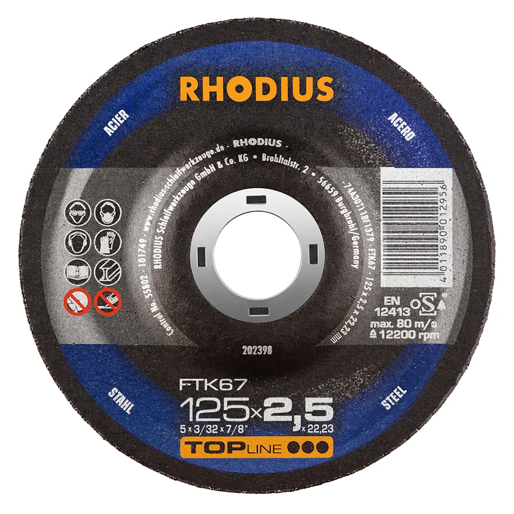 Dans la pratique, le FTK67 convainc par une durée de vie très élevée, ainsi que des coupes agressives. Un travail précis dans les matériaux à paroi mince ne pose plus aucun problème. Ce disque se caractérise par une formation de poussière réduite et un fonctionnement exceptionnellement silencieux. Ce disque de tronçonnage permet un travail particulièrement rentable. Cet outil de qualité RHODIUS convient tout particulièrement pour le tronçonnage de l’acier de construction, de l’acier à outils et de l’acier fortement allié, mais aussi des supports, profilés, plaques et traverses.