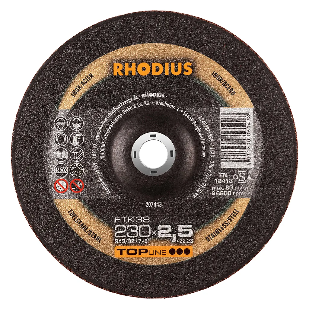 Les disques de tronçonnage RHODIUS pour l’acier inoxydable ne contiennent ni fer, ni soufre. Afin d’éviter la rouille, nous conseillons de ne jamais passer de l’acier normal à l’acier inoxydable avec le même disque.