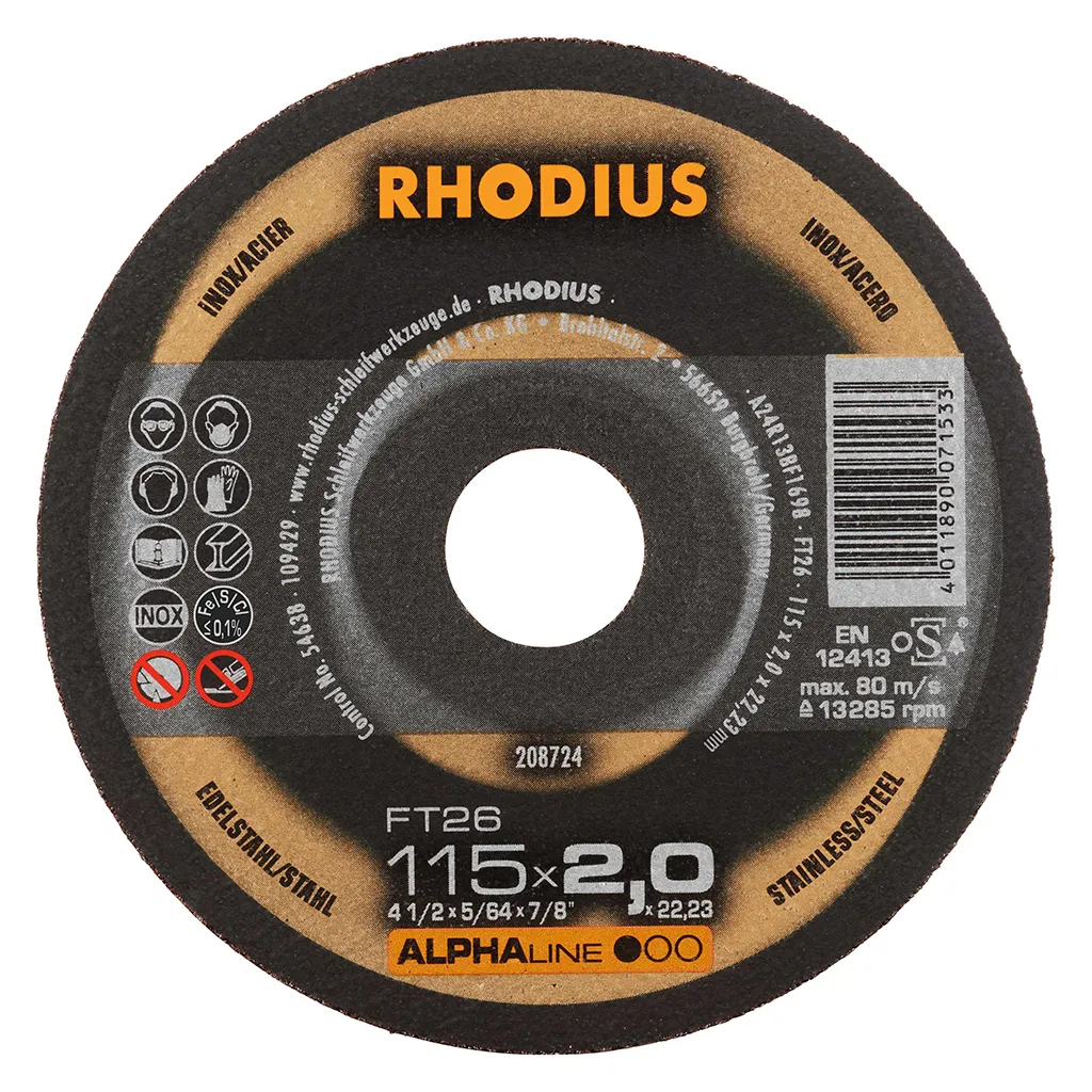 Les disques de tronçonnage RHODIUS pour l’acier inoxydable ne contiennent ni fer, ni soufre. Afin d’éviter la rouille, nous conseillons de ne jamais passer de l’acier normal à l’acier inoxydable avec le même disque.