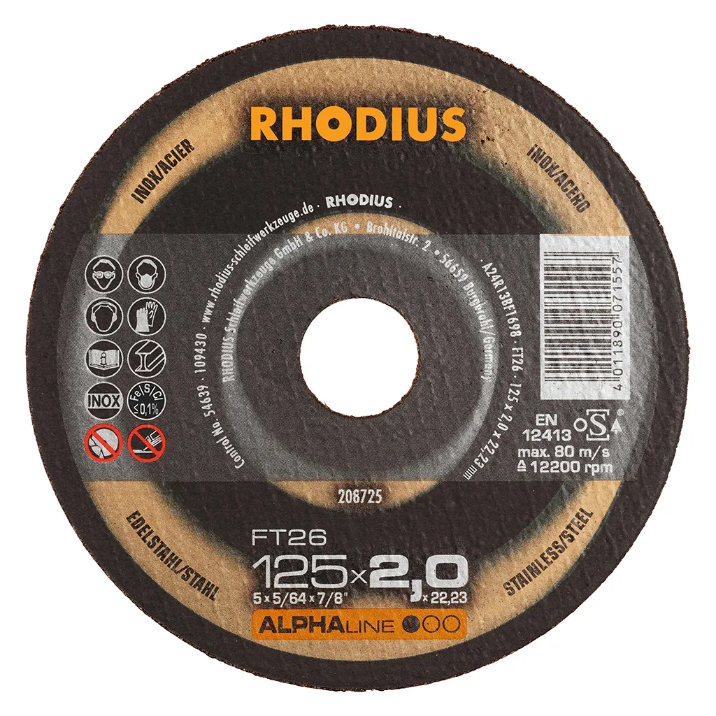 Les disques de tronçonnage RHODIUS pour l’acier inoxydable ne contiennent ni fer, ni soufre. Afin d’éviter la rouille, nous conseillons de ne jamais passer de l’acier normal à l’acier inoxydable avec le même disque.