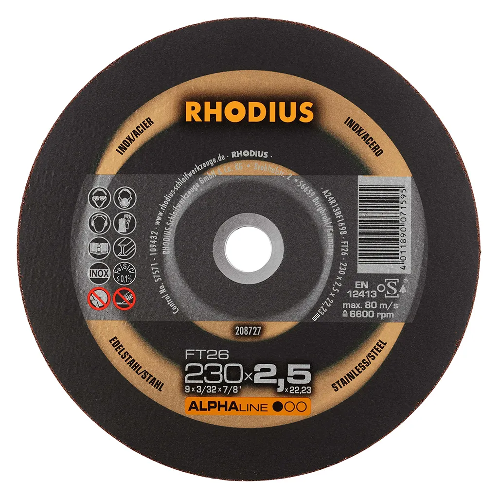 Les disques de tronçonnage RHODIUS pour l’acier inoxydable ne contiennent ni fer, ni soufre. Afin d’éviter la rouille, nous conseillons de ne jamais passer de l’acier normal à l’acier inoxydable avec le même disque.
