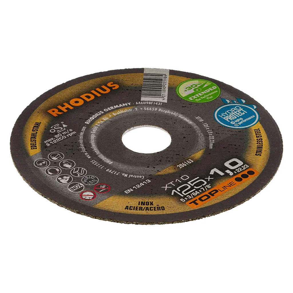 Les disques de tronçonnage RHODIUS pour l’acier inoxydable ne contiennent ni fer, ni soufre. Afin d’éviter la rouille, nous conseillons de ne jamais passer de l’acier normal à l’acier inoxydable avec le même disque.