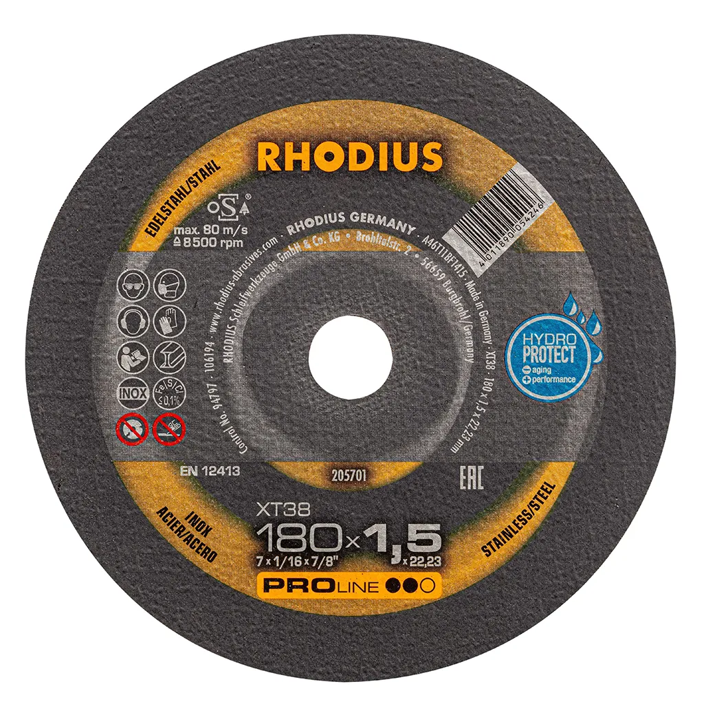 Les disques de tronçonnage RHODIUS pour l’acier inoxydable ne contiennent ni fer, ni soufre. Afin d’éviter la rouille, nous conseillons de ne jamais passer de l’acier normal à l’acier inoxydable avec le même disque.