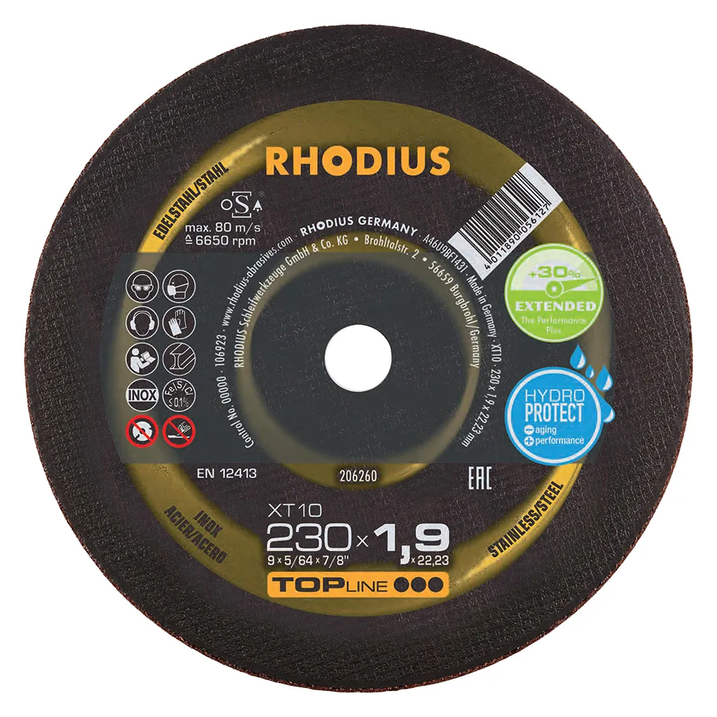 Les disques de tronçonnage RHODIUS pour l’acier inoxydable ne contiennent ni fer, ni soufre. Afin d’éviter la rouille, nous conseillons de ne jamais passer de l’acier normal à l’acier inoxydable avec le même disque.