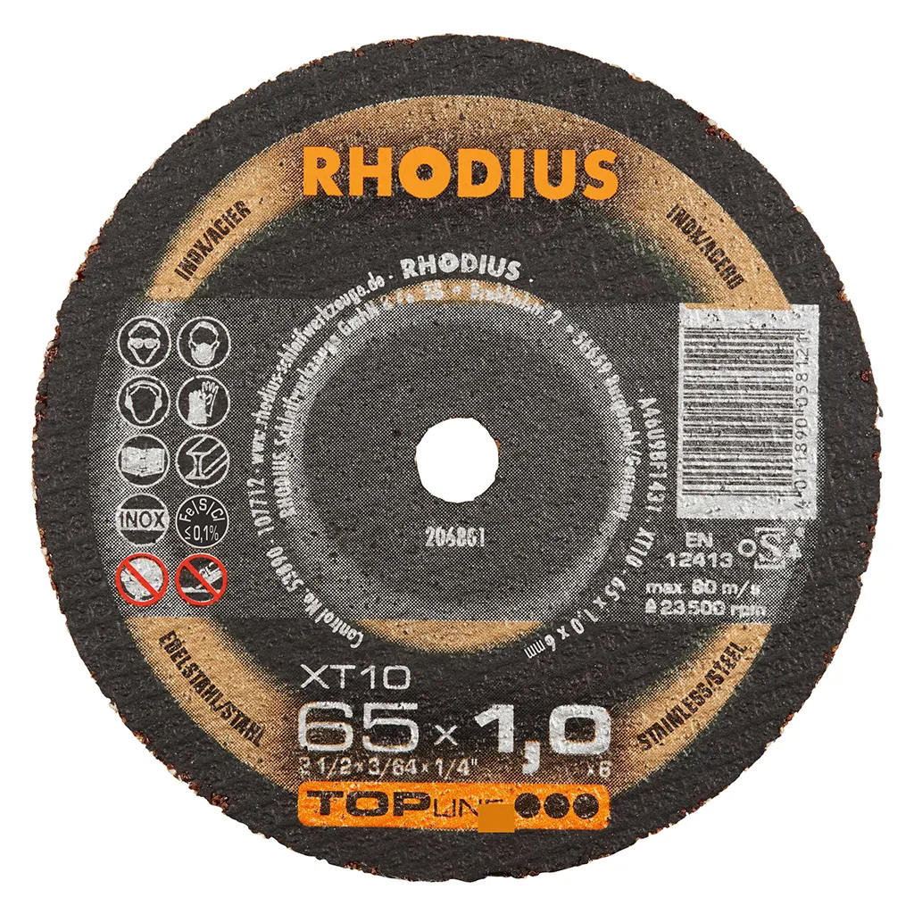 Les disques de tronçonnage RHODIUS pour l’acier inoxydable ne contiennent ni fer, ni soufre. Afin d’éviter la rouille, nous conseillons de ne jamais passer de l’acier normal à l’acier inoxydable avec le même disque.