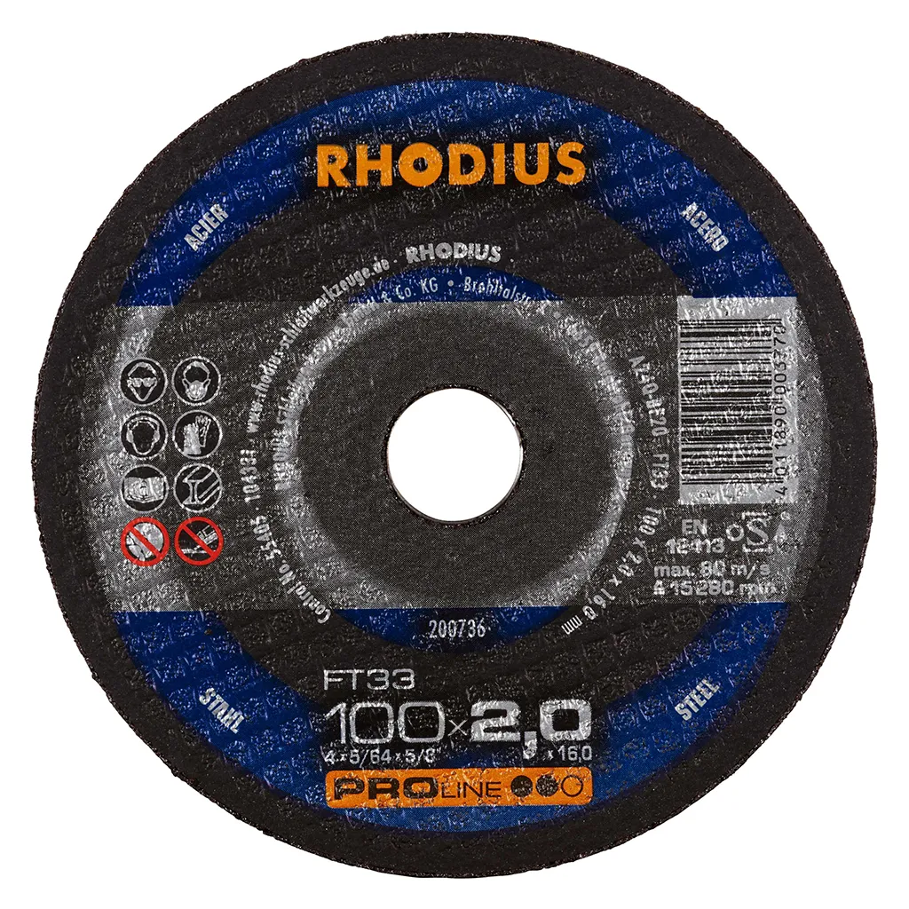 Dans la pratique, le FT33 convainc par ses coupes agressives et son fonctionnement exceptionnellement silencieux. Un travail précis dans les matériaux à paroi mince ne pose plus aucun problème. Ce disque de tronçonnage permet un travail particulièrement rentable. Cet outil de qualité RHODIUS convient tout particulièrement pour le tronçonnage de l’acier de construction, de l’acier à outils et de l’acier fortement allié, mais aussi des supports, profilés, plaques et traverses.