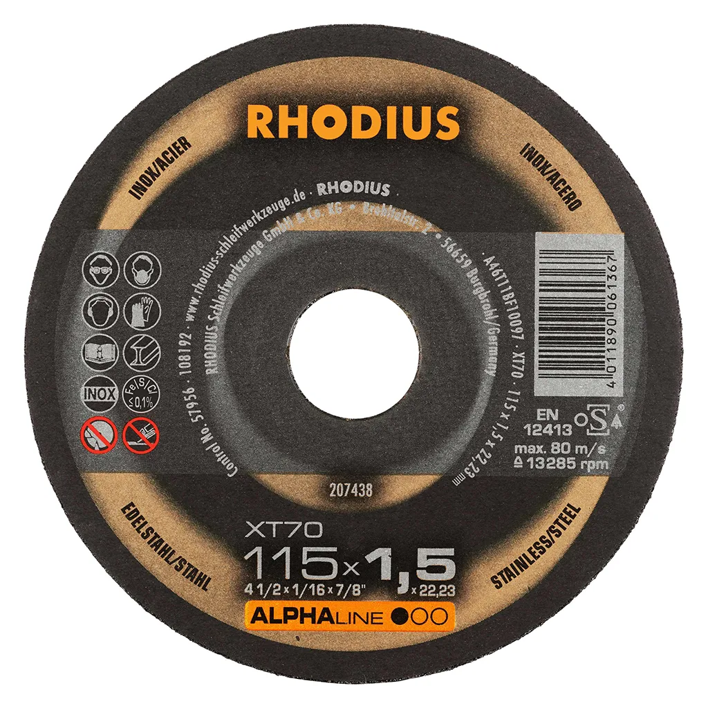 Les disques de tronçonnage RHODIUS pour l’acier inoxydable ne contiennent ni fer, ni soufre. Afin d’éviter la rouille, nous conseillons de ne jamais passer de l’acier normal à l’acier inoxydable avec le même disque.