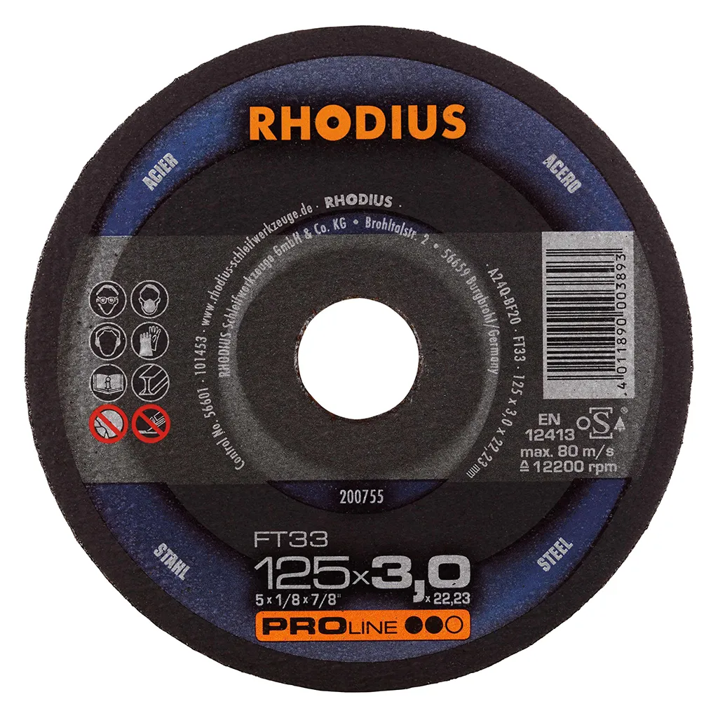 Dans la pratique, le FT33 convainc par ses coupes agressives et son fonctionnement exceptionnellement silencieux. Un travail précis dans les matériaux à paroi mince ne pose plus aucun problème. Ce disque de tronçonnage permet un travail particulièrement rentable. Cet outil de qualité RHODIUS convient tout particulièrement pour le tronçonnage de l’acier de construction, de l’acier à outils et de l’acier fortement allié, mais aussi des supports, profilés, plaques et traverses.