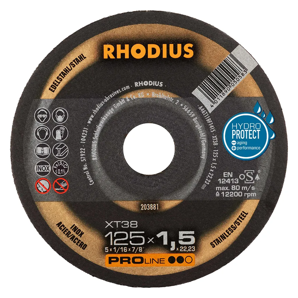 Les disques de tronçonnage RHODIUS pour l’acier inoxydable ne contiennent ni fer, ni soufre. Afin d’éviter la rouille, nous conseillons de ne jamais passer de l’acier normal à l’acier inoxydable avec le même disque.