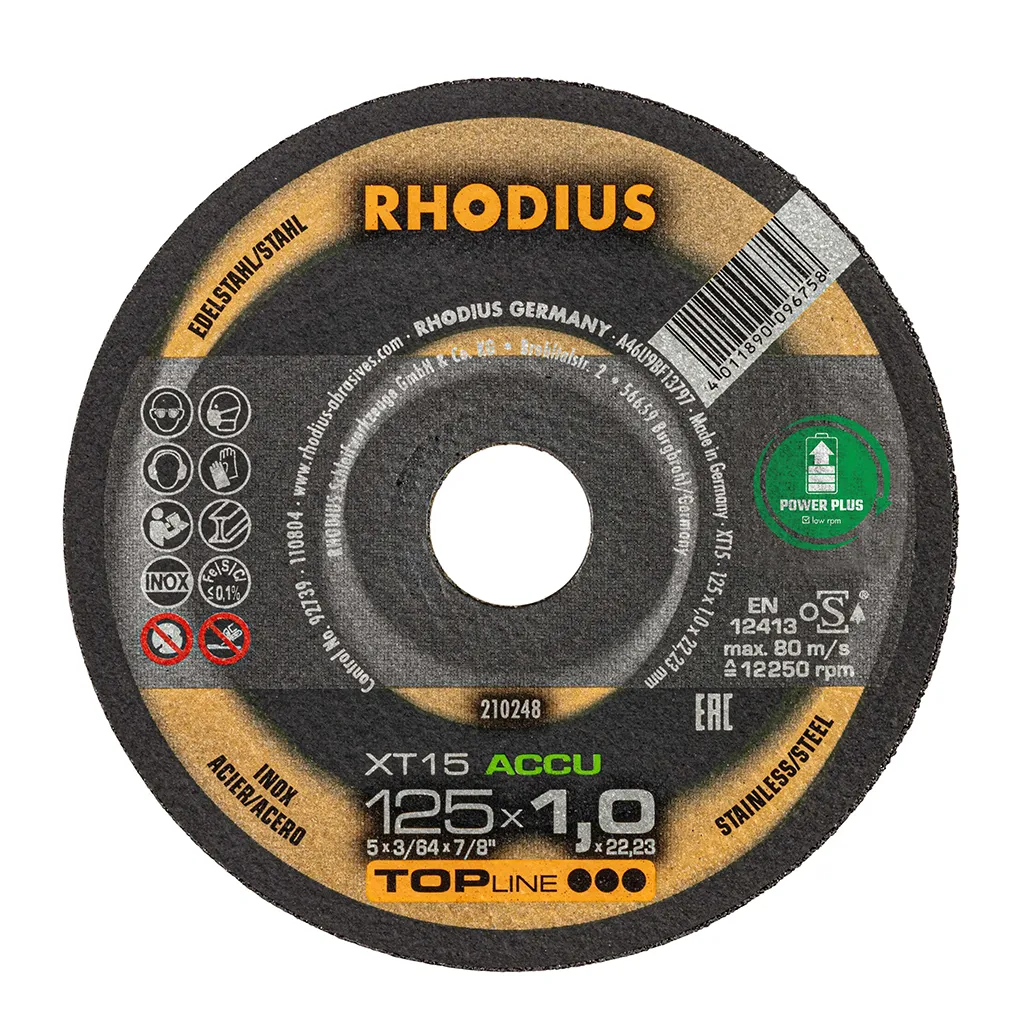 Dans la pratique, le XT15 ACCU convainc par ses coupes particulièrement agressives, simples et rapides, même dans les matériaux pleins. Un travail précis dans les matériaux à paroi mince ne pose plus aucun problème. Ce disque se caractérise par une projection d’étincelles et une formation de poussière réduites, ainsi que par un fonctionnement exceptionnellement silencieux. Il facilite le travail et est particulièrement rentable. Cet outil de qualité RHODIUS convient particulièrement pour le tronçonnage de l’acier de construction, des tôles à paroi mince, de l’acier antirouille et antiacide et des tôles revêtues de matière plastique.