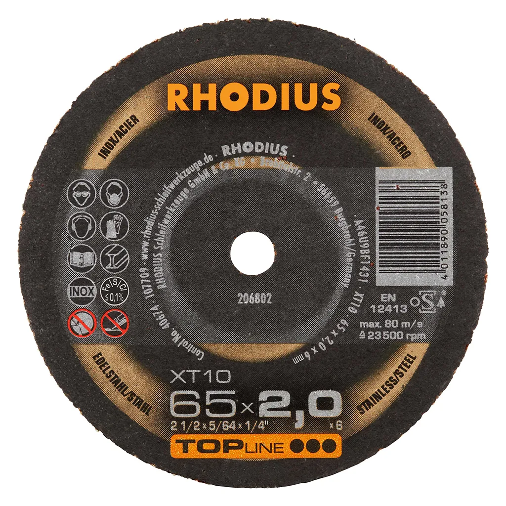 Les disques de tronçonnage RHODIUS pour l’acier inoxydable ne contiennent ni fer, ni soufre. Afin d’éviter la rouille, nous conseillons de ne jamais passer de l’acier normal à l’acier inoxydable avec le même disque.