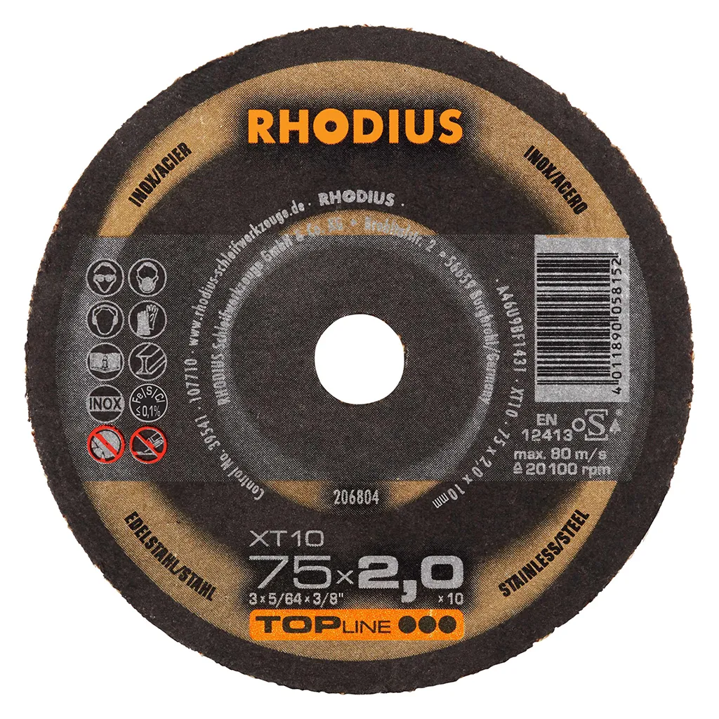 Les disques de tronçonnage RHODIUS pour l’acier inoxydable ne contiennent ni fer, ni soufre. Afin d’éviter la rouille, nous conseillons de ne jamais passer de l’acier normal à l’acier inoxydable avec le même disque.