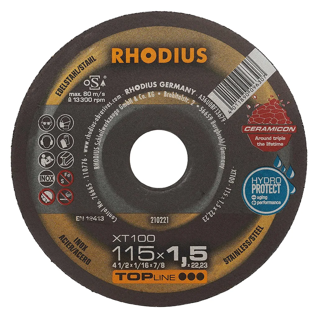 Les disques de tronçonnage RHODIUS pour l’acier inoxydable ne contiennent ni fer, ni soufre. Afin d’éviter la rouille, nous conseillons de ne jamais passer de l’acier normal à l’acier inoxydable avec le même disque.