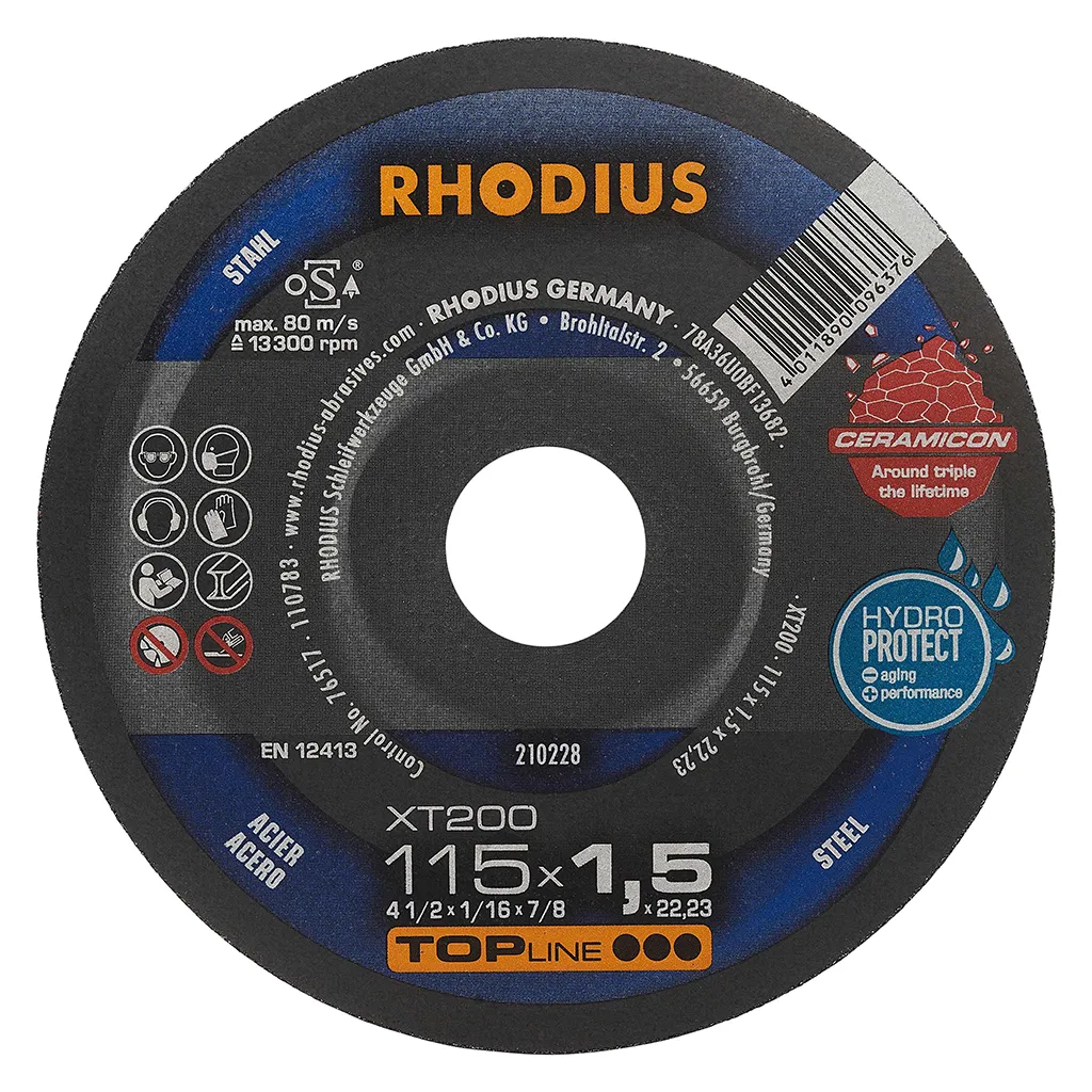 Dans la pratique, le XT200 convainc par une durée de vie très élevée, ainsi que des coupes particulièrement agressives, simples et rapides, même dans les matériaux pleins. Un travail précis dans les matériaux à paroi mince ne pose plus aucun problème. Ce disque se caractérise par une projection d’étincelles et une formation de poussière réduites, ainsi que par un fonctionnement exceptionnellement silencieux. Il facilite le travail et est particulièrement rentable. Le XT200 EXTENDED offre à l’utilisateur un rapport qualité-prix optimal. Cet outil de qualité RHODIUS convient tout particulièrement pour le tronçonnage de l’acier de construction, de l’acier à outils, de l’acier à ressorts, des tôles à paroi mince, de l’acier fortement allié et des tôles à haute rigidité, ainsi que des chemins de câbles, supports, profilés, plaques et traverses.
