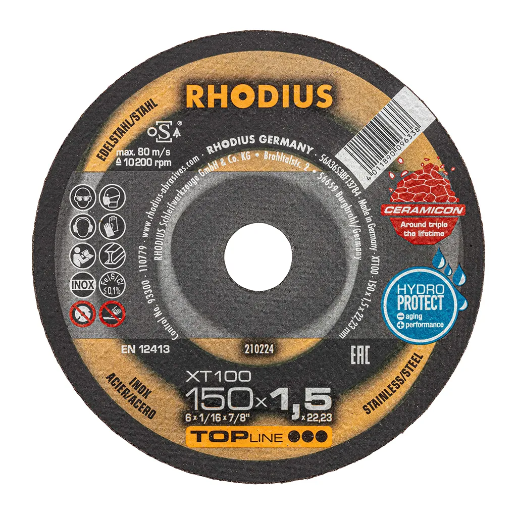 Les disques de tronçonnage RHODIUS pour l’acier inoxydable ne contiennent ni fer, ni soufre. Afin d’éviter la rouille, nous conseillons de ne jamais passer de l’acier normal à l’acier inoxydable avec le même disque.
