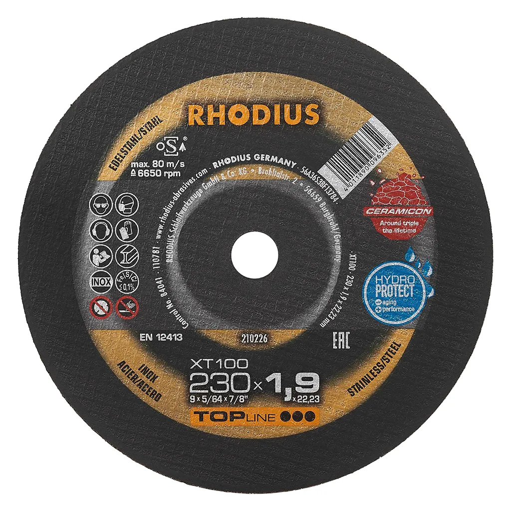 Dans la pratique, le XT100 convainc par une durée de vie très élevée, ainsi que des coupes particulièrement agressives, simples et rapides, même dans les matériaux pleins. Ce disque se caractérise par une projection d’étincelles et Objectif d’utilisation une formation de poussière réduites, une utilisation stable, ainsi que par un fonctionnement exceptionnellement silencieux. Il facilite le travail et est particulièrement rentable. Un travail précis et rapide dans les matériaux à paroi mince ne pose plus aucun problème. Il offre un rapport qualité-prix optimal. Cet outil de qualité RHODIUS convient tout particulièrement pour le tronçonnage de l’acier de construction, de l’acier à outils, de l’acier à ressorts, des tôles à paroi mince, de l’acier antirouille et antiacide, de l’acier fortement allié et des tôles à haute rigidité, ainsi que des chemins de câble, supports, profilés, plaques et traverses.