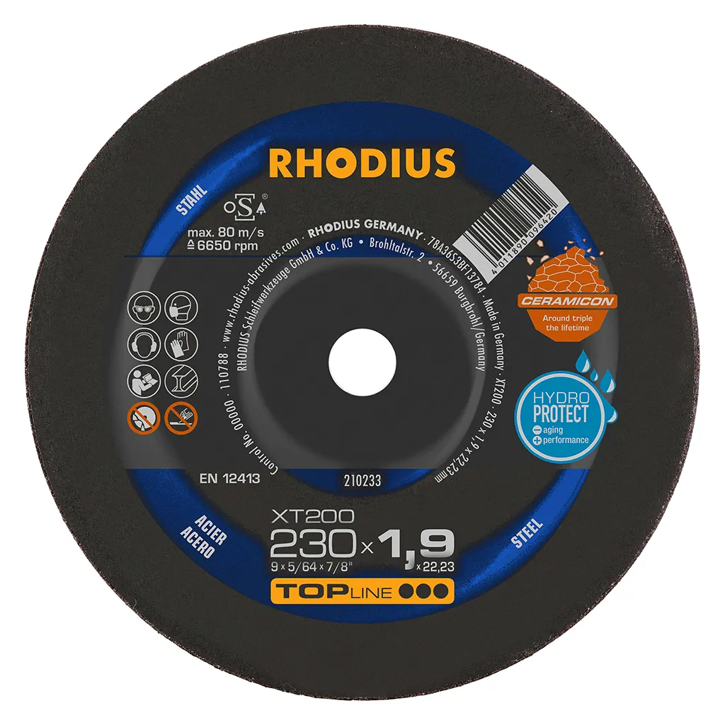Dans la pratique, le XT200 convainc par une durée de vie très élevée, ainsi que des coupes particulièrement agressives, simples et rapides, même dans les matériaux pleins. Un travail précis dans les matériaux à paroi mince ne pose plus aucun problème. Ce disque se caractérise par une projection d’étincelles et une formation de poussière réduites, ainsi que par un fonctionnement exceptionnellement silencieux. Il facilite le travail et est particulièrement rentable. Le XT200 EXTENDED offre à l’utilisateur un rapport qualité-prix optimal. Cet outil de qualité RHODIUS convient tout particulièrement pour le tronçonnage de l’acier de construction, de l’acier à outils, de l’acier à ressorts, des tôles à paroi mince, de l’acier fortement allié et des tôles à haute rigidité, ainsi que des chemins de câbles, supports, profilés, plaques et traverses.