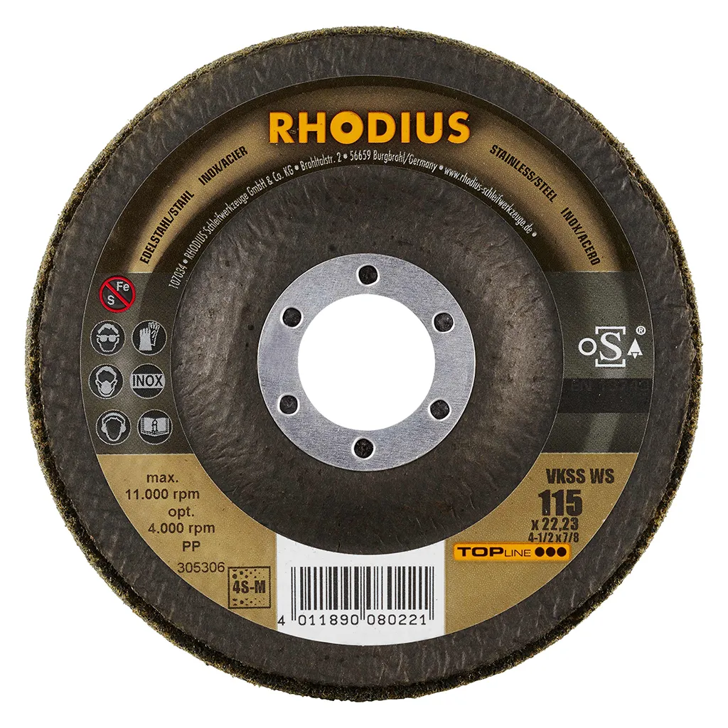 Avec le disque compact en non-tissé VKSG WS (et VKSS WS, modèle incliné), l’utilisateur est assuré d’acquérir le meilleur outil RHODIUS de sa catégorie. Les produits TOPline de RHODIUS sont la garantie de performances et d’une qualité maximales.